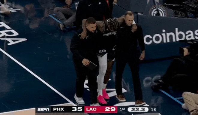 北京时间11月9日,在太阳客场对阵快船的比赛,太阳新援杰伦-格林在复出第二场再次受伤。格林首节疑似出现右大腿腿筋拉伤情况,随后被队医搀扶返回更衣室。